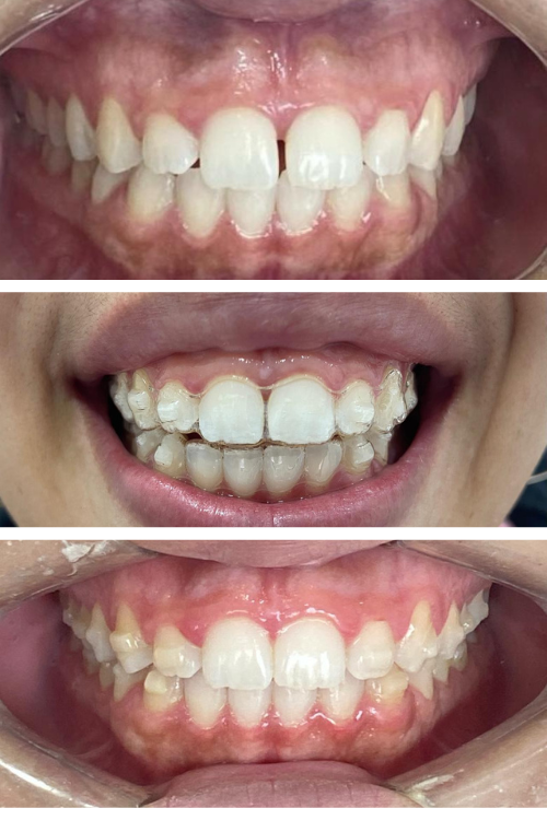 Alinhadores transparentes, discretos e confortáveis, que corrigem o sorriso sem interferir na sua rotina.